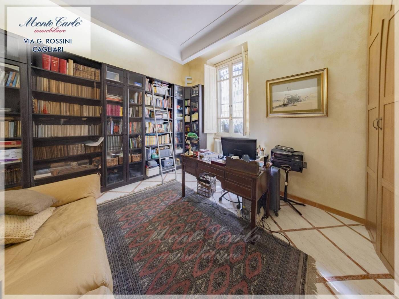 Via Rossini in piccolo condominio bella epoque anni '30 piano rialzato ingresso, due camere da letto, cucina tinello salone con camino, due bagni di cui uno padronale ed uno di cortesia. Ristrutturato 20 anni fa riscaldamento indipendente a gas di città. Veranda che si affaccia sul giardino interno privato di mq 200 con dépendance mq 25 più cantina interrata Euro 380.000